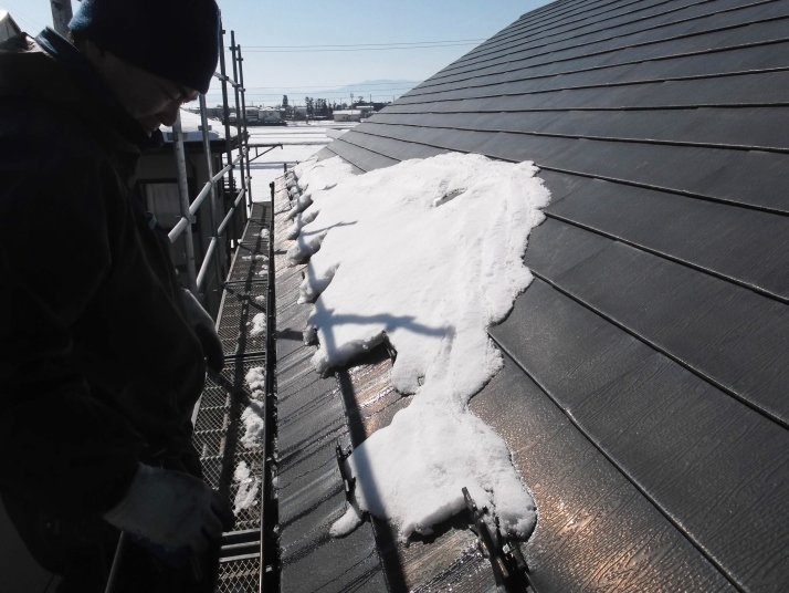 夜の間に屋根の上で凍って固まった雪が、昼間の熱で溶けて落雪し、車やフェンスを破損してしまったり、ましてや人の上に落ちたりしたら、大変な事故になってしまいます。