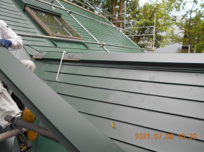 屋根の葺き替えは、すでに葺かれている屋根材を撤去して新しい屋根材に葺き替える工事方法です。古い屋根材を撤去するので屋根の下地、野地板も一緒にメンテナンスすることができます。屋根葺き替え工事はこちらへ