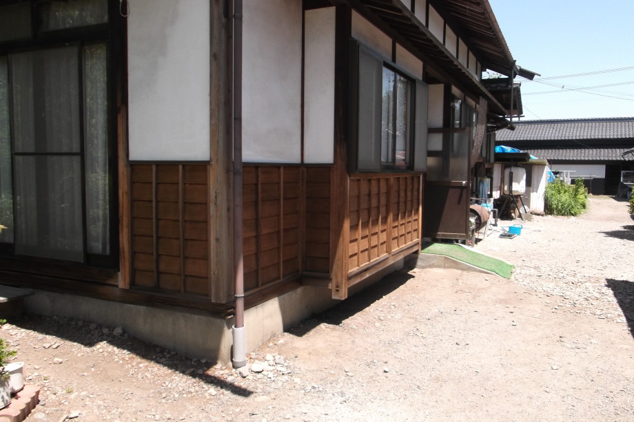 安曇野市の現在の工事情報 住宅/外壁(腰板)塗装工事の紹介 工事内容/外壁木板 木柱を高圧洗浄 ケレンをして4回塗り工事です。