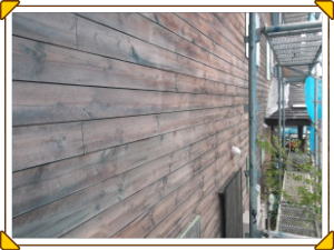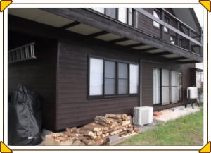 ネット特典 現在の工事情報 北安曇郡 池田町の住宅/外壁木板塗装工事の紹介 工事内容/外壁木板塗装/雨樋塗装/破風塗装/水切り塗装/裏口ドア新設工事です。