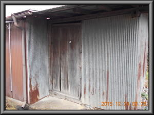 インターネット特典/安曇野市の物置/屋根トタン波板張替工事の紹介 工事内容/屋根トタン波板張替/入口のドア新設/入口の古い柱入れ替え工事です。