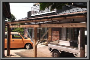 柱を設置・破風板を設置・ポリカ波板(タキロン)張替