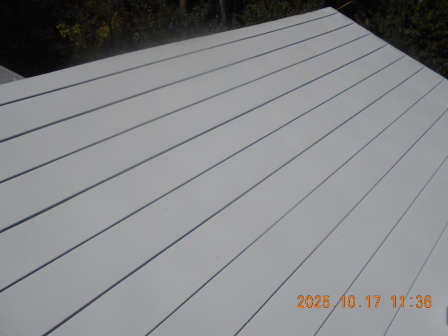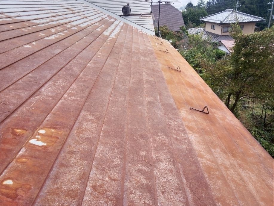 安曇野市穂高有明の住宅/屋根塗装工事の紹介 工事内容/トタン 屋根塗装/雨樋塗装です・石井板金.塗装では屋根の劣化状況を丁寧に調査し大切な貴方様のお住まいに適した屋根塗装リフォーム工事をご提案させていただきます。